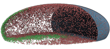 Simulation of PTEN (red) and PIP3 (green) waves in Dictyostelium discoideum using Spatiocyte. PTEN: phosphatase and tensin homolog, PIP3: phosphatidylinositol 3,4,5-trisphosphate.